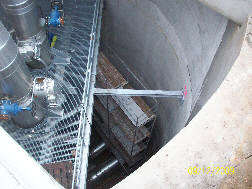 In den Schachtbauwerken werden die vertikalen Rohrleitungen mittels Pratzenlager gehalten. Diese Pratzenlager sind in Bedienbühnen aus Profilstahl integriert, die im Bereich der Absperrklappen angeordnet sind.